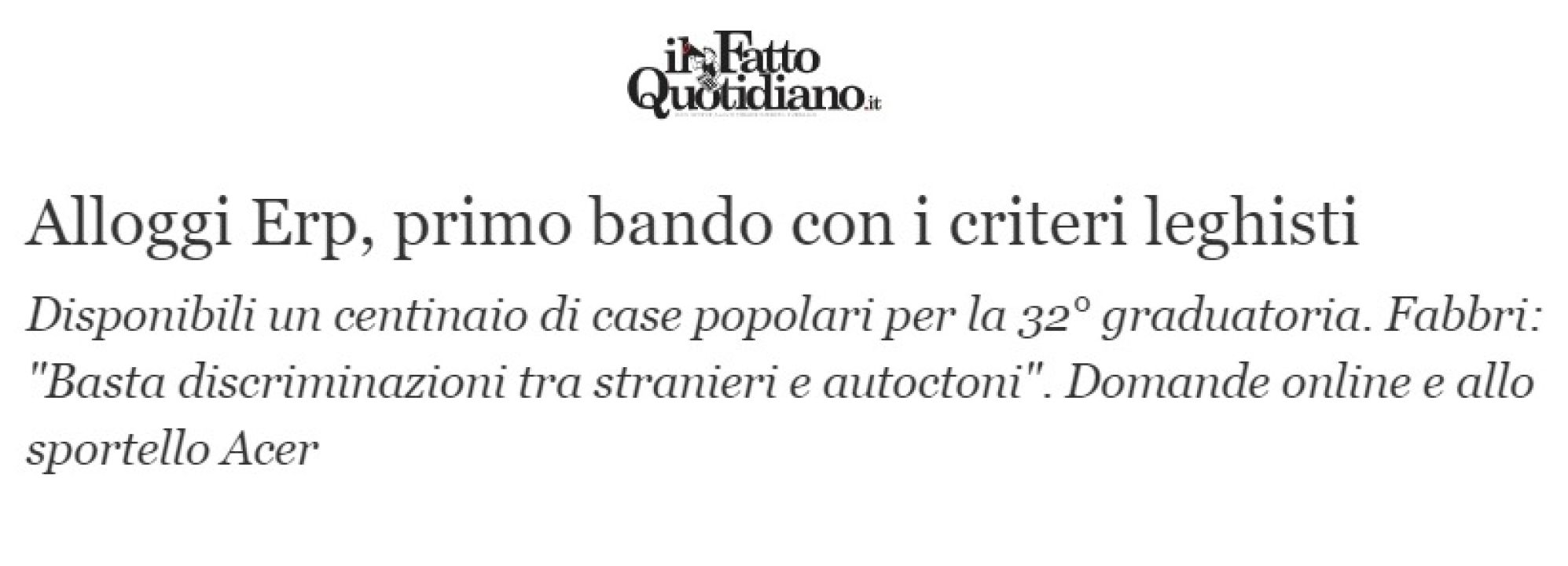 Bloccando l'accesso agli immigrati la nostra giunta spera di riempire le case popolari di famiglie