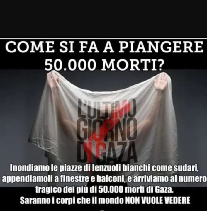 Lo faremo in silenzio, mostrando i sudari macchiati di rosso e i vestitini dei bambini per ricordare al nostro Governo, alla nostra società che quei 14.000 bambini sono anche figli nostri.