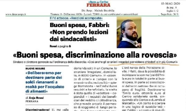 ECCO LA SOLUZIONE! Riportiamo dal Carlino di ieri, 03-05-2020 (“Buoni spesa, discriminazione alla…