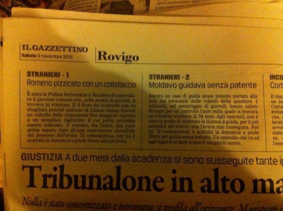 Stranieri 1: Romeno pizzicato con un coltellaccio