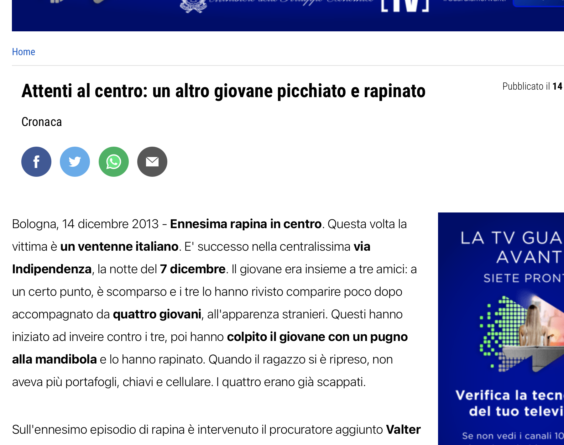 Bologna, 14 dicembre 2013 - Ennesima rapina in centro. Questa volta la vittima è un ventenne italiano. E' successo nella centralissima via Indipendenza, la notte del 7 dicembre. Il giovane era insieme a tre amici: a un certo punto, è scomparso e i tre lo hanno rivisto comparire poco dopo accompagnato da quattro giovani, all'apparenza stranieri....