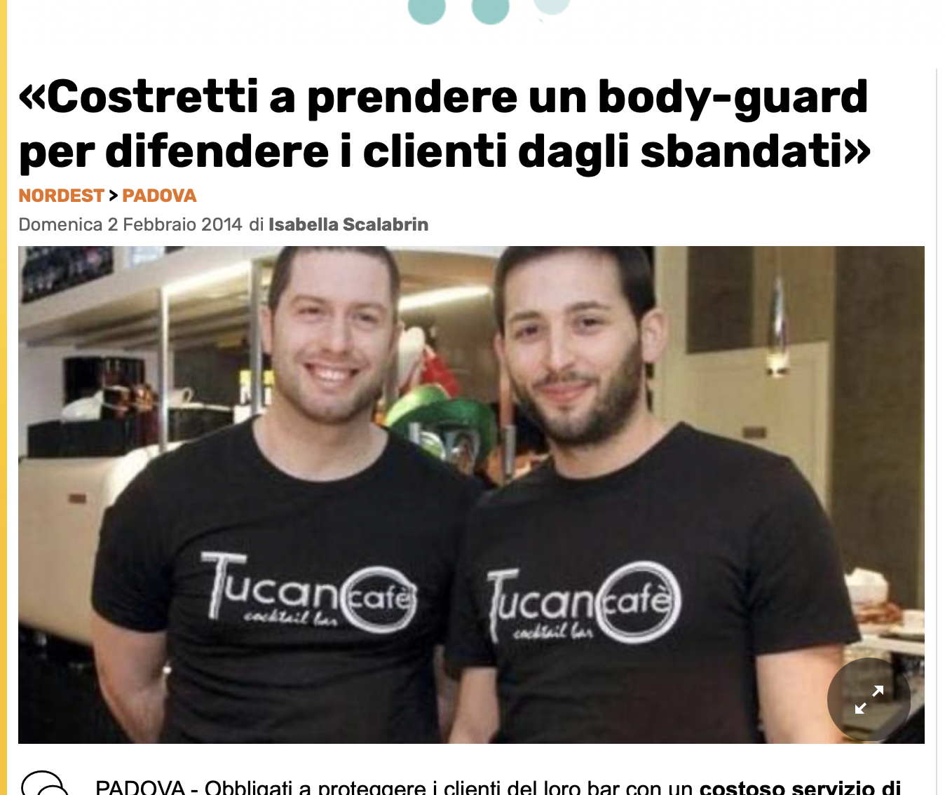 «Abbiamo dovuto ricorrere alla vigilanza privata a partire dalla scorsa estate - dice Soffiato - a causa della presenza di un gruppo di stranieri dell'est che vivono sotto il ponte del Bassanello [...] Se non ci fossero i nostri addetti alla sicurezza durante le serate di apertura, i balordi molesterebbero gli avventori con la richiesta di sigarette[...]»