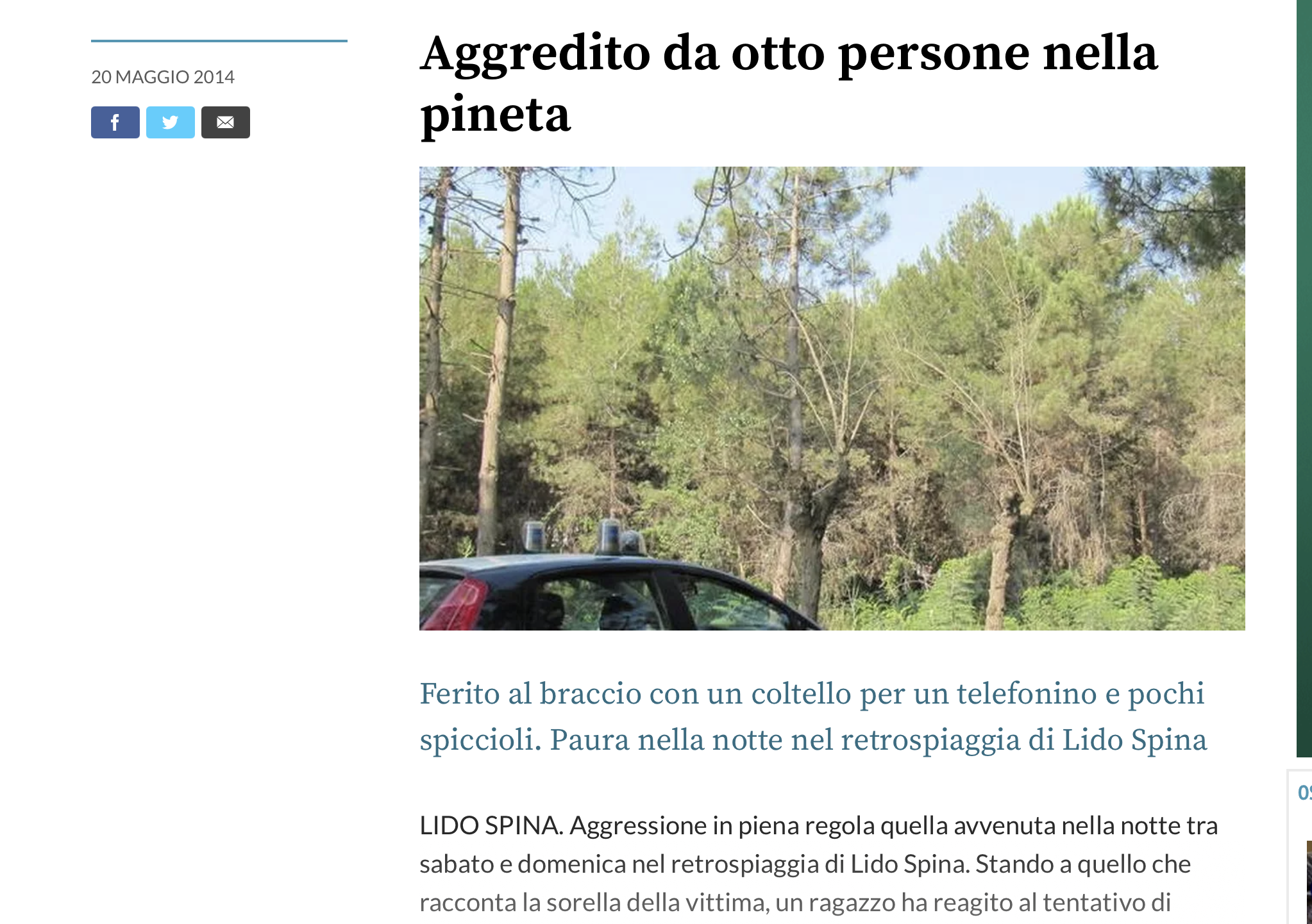 Ferito al braccio con un coltello per un telefonino e pochi spiccioli. Paura nella notte nel retrospiaggia di Lido Spina