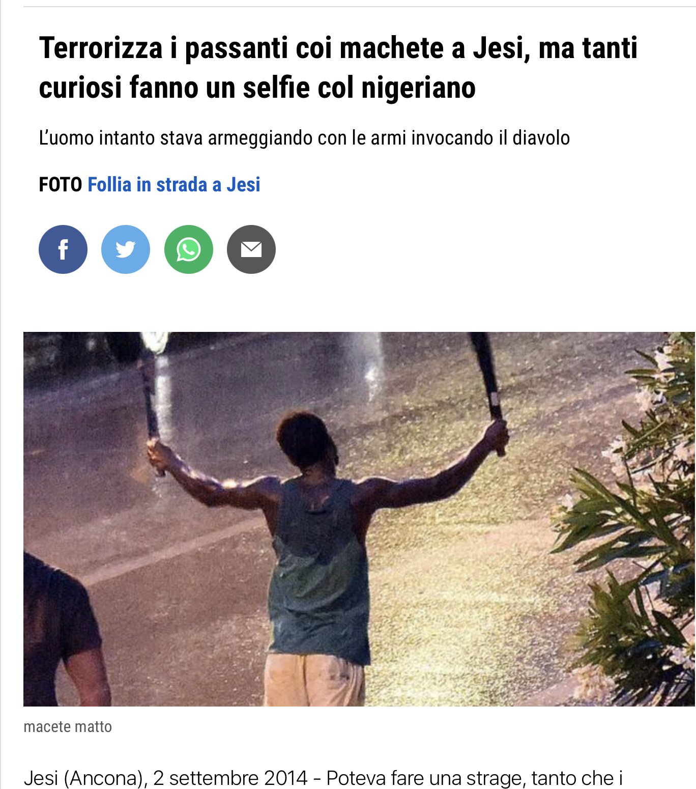 Terrorizza i passanti coi machete a Jesi, ma tanti curiosi fanno un selfie col nigeriano