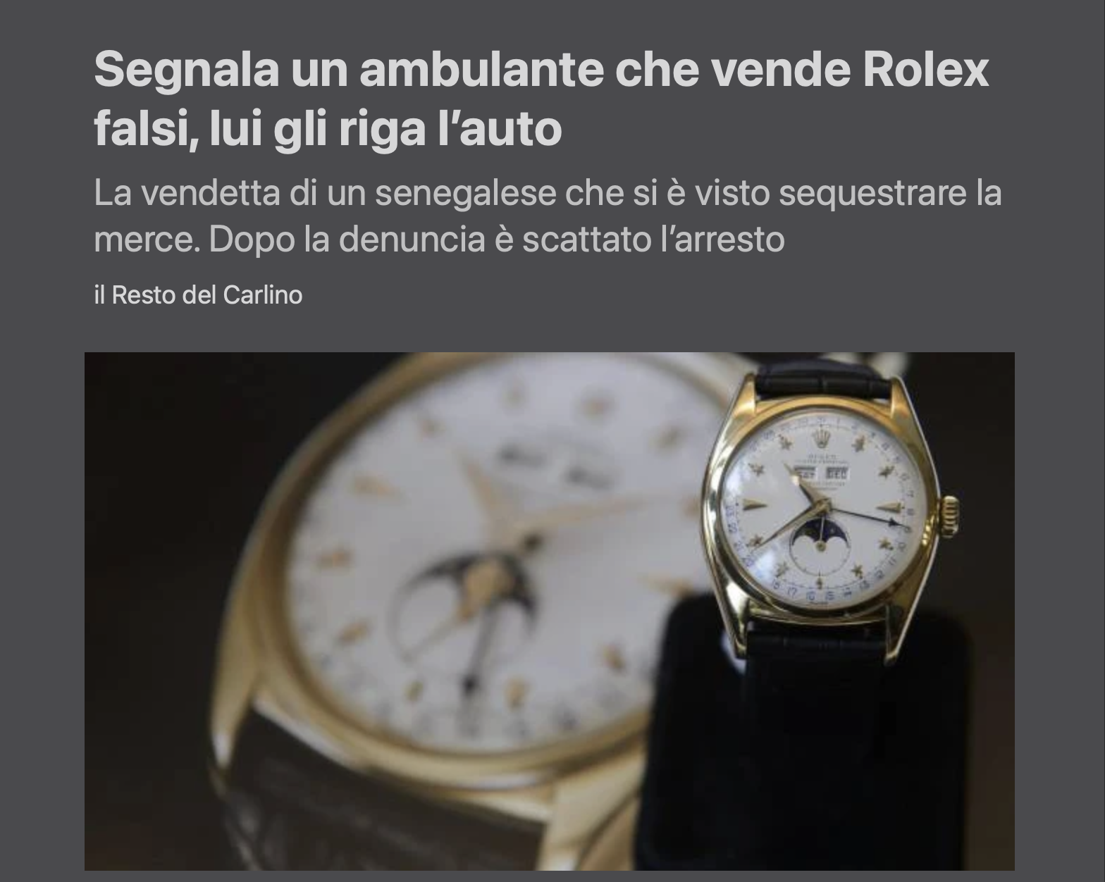 Segnala un ambulante che vende Rolex falsi, lui gli riga l’auto