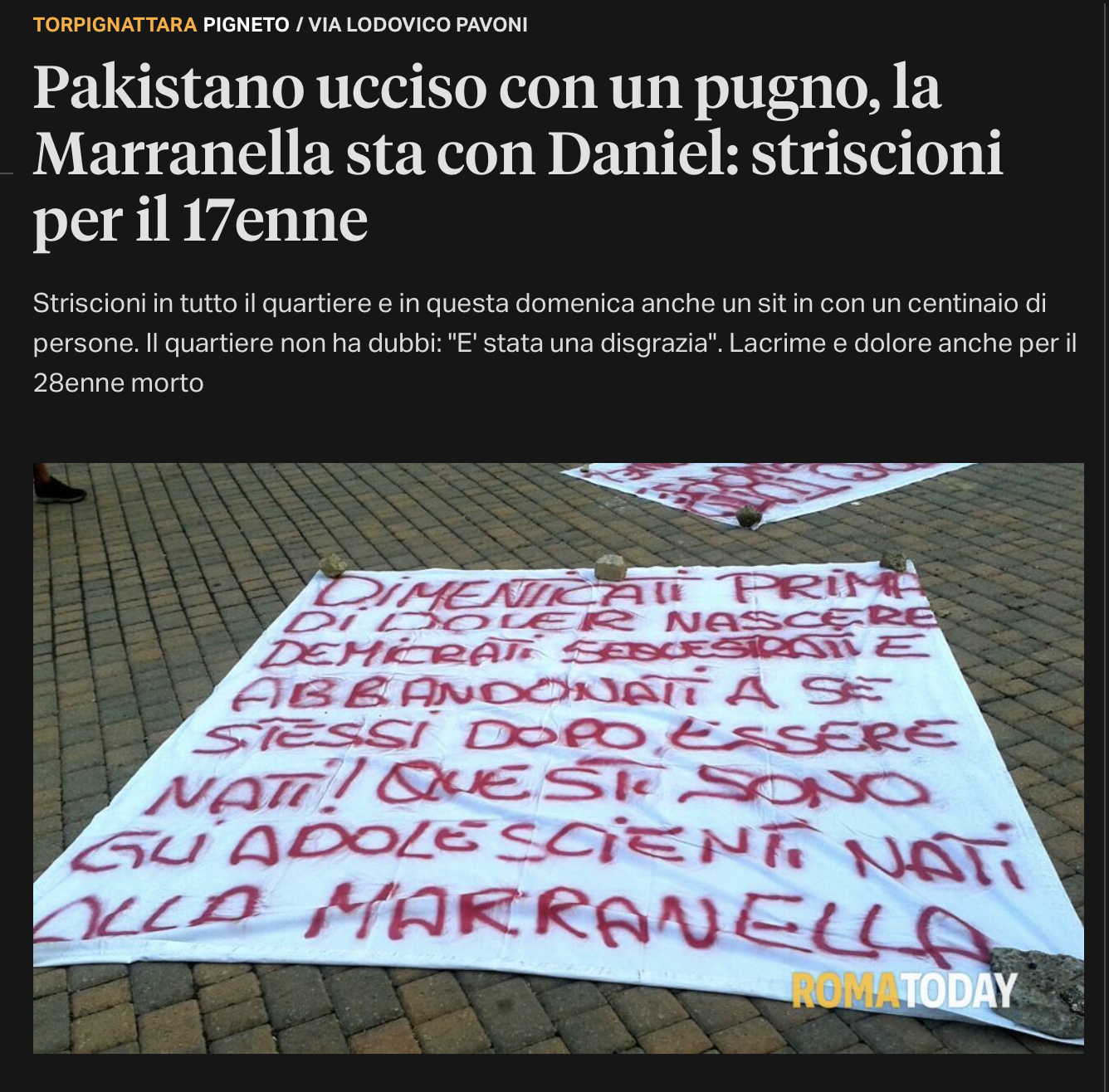 Pakistano ucciso con un pugno, la Marranella sta con Daniel: striscioni per il 17enne