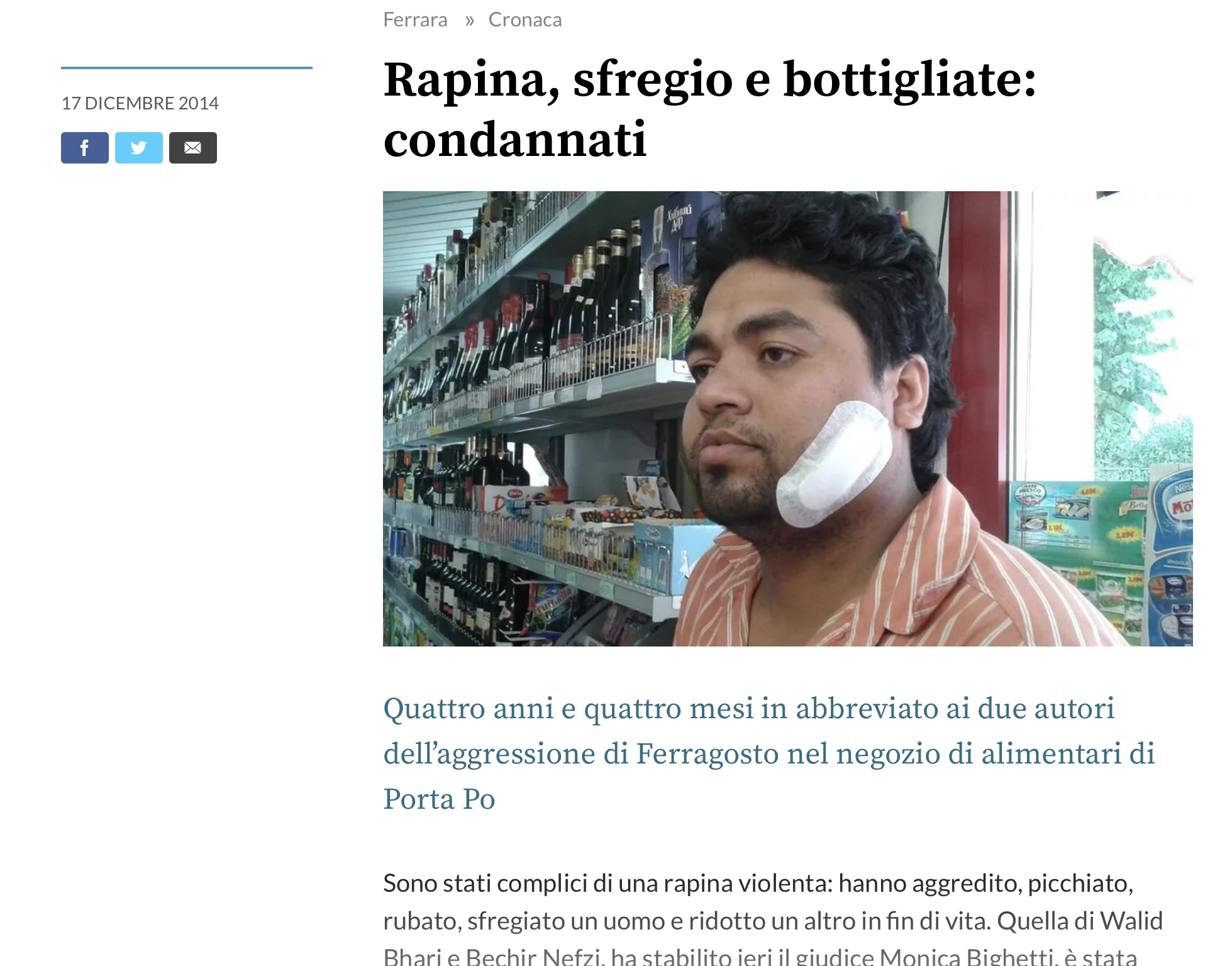 Sono stati complici di una rapina violenta: hanno aggredito, picchiato, rubato, sfregiato un uomo e ridotto un altro in fin di vita. Quella di Walid Bhari e Bechir Nefzi, ha stabilito ieri il giudice Monica Bighetti, è stata un’azione unanime e compatta, e tale è stata di conseguenza la condanna inflitta: quattro anni e quattro mesi ciascuno, senza distinguo, senza posizioni più o meno defilate.