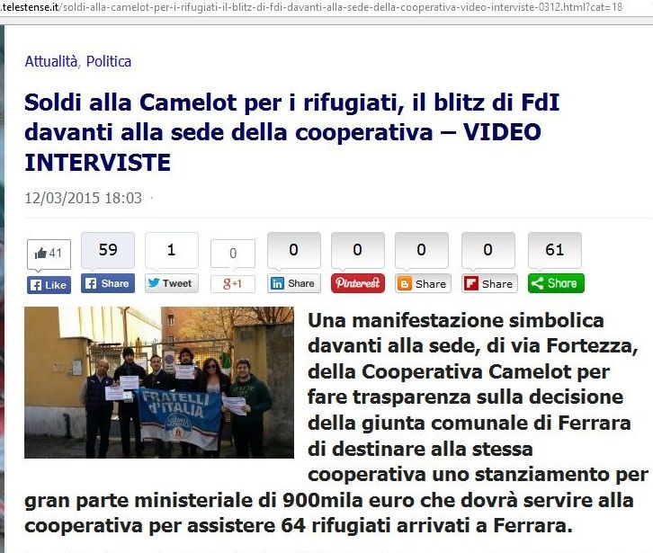 lo chiamano “blitz”, lo chiamano “manifestazione simbolica”, ma in verità sono 6 (sei) persone con uno striscione che si sono messi daccordo con una TV locale per creare un evento esclusivamente mediatico. Le informazioni sulle cartelle che queste 6 persone mostrano alla telecamera sono totalmente false: nessun rifugiato o clandestino ha mai ricevuto, né riceverà, 1000 euro al mese, ma nell'intero reportage non c'è neanche l'accenno della messa in discussione di questo fatto, ovviamente falso. E l'effetto di questa messa in scena diventata notizia è di aumentare l'odio contro i profughi che scappano dalla guerra.