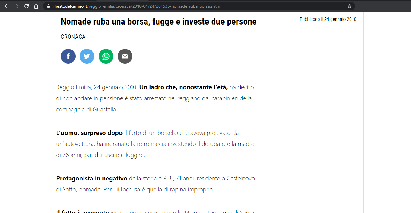 Protagonista in negativo della storia è P. B., 71 anni, residente a Castelnovo di Sotto, nomade. Per lui l’accusa è quella di rapina impropria.