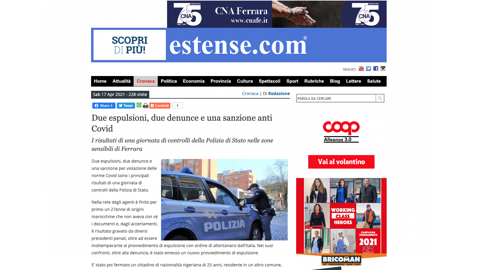 All'elenco di persone di colore - o almeno di origine non italiana - riportato nei giornali locali perchè fermate e sanzionate per qualsiasi motivo. Ferrara: città multiculturale.