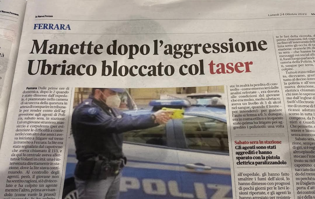 nonostante i toni fortemente giustificativi dell’articolo (poteva essere scritto direttamente dalla polizia stessa) rimane il fatto che un ragazzo è caduto per terra e si è ferito dopo essere stato colpito con un taser.