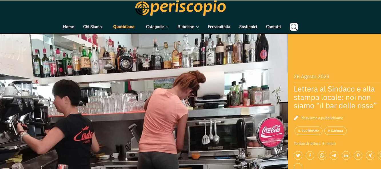 Rimandiamo volentieri alla lettera che segnala "una non veritiera e potenzialmente diffamatoria rappresentazione sulle cronache locali" ferraresi, un argomento a noi molto familiare.