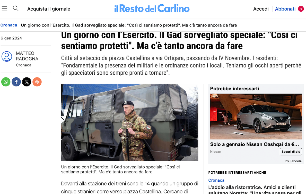 Nessun tentativo di distinguere tra “stranieri” e criminalità: qualsiasi "straniero" si muova nella zona è, in quanto tale, un sospettato.