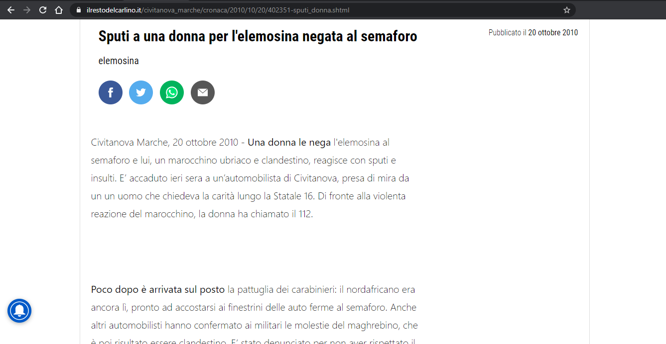 Sputi a una donna per l'elemosina negata al semaforo