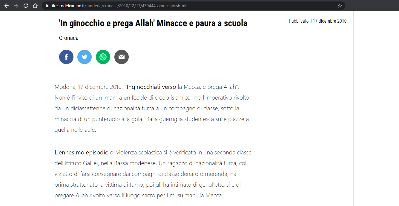 'In ginocchio e prega Allah' Minacce e paura a scuola
