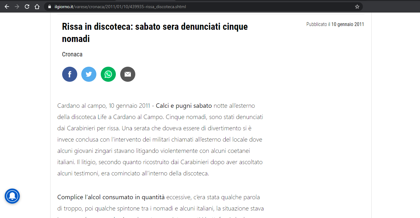 Cinque nomadi, sono stati denunciati dai Carabinieri per rissa. Una serata che doveva essere di divertimento si è invece conclusa con l’intervento dei militari chiamati all’esterno del locale dove alcuni giovani zingari stavano litigando violentemente con alcuni coetanei italiani.