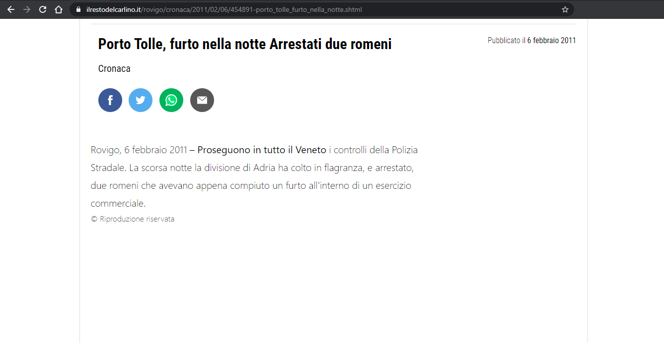 La scorsa notte la divisione di Adria ha colto in flagranza, e arrestato, due romeni che avevano appena compiuto un furto all'interno di un esercizio commerciale.