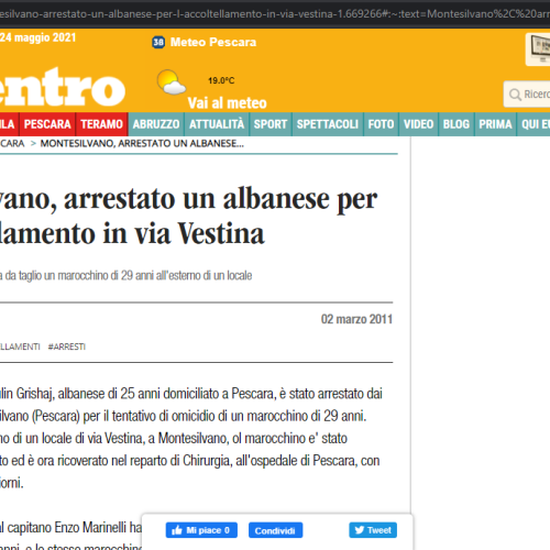 Paulin Grishaj, albanese di 25 anni domiciliato a Pescara, è stato arrestato dai carabinieri di Mon…