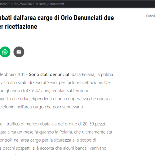 Cellulari rubati dall'area cargo di Orio Denunciati due ghanesi per ricettazione