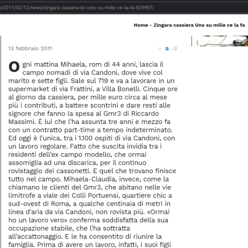Ogni mattina Mihaela, rom di 44 anni, lascia il campo nomadi di via Candoni, dove vive col marito e…