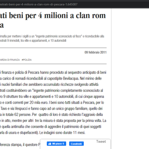 Sequestrati beni per 4 milioni a clan rom di Pescara