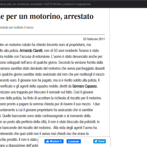 Estorsione per un motorino: è successo a Teramo dove Armando Ciarelli, 50 anni, rom, è stato arrest…