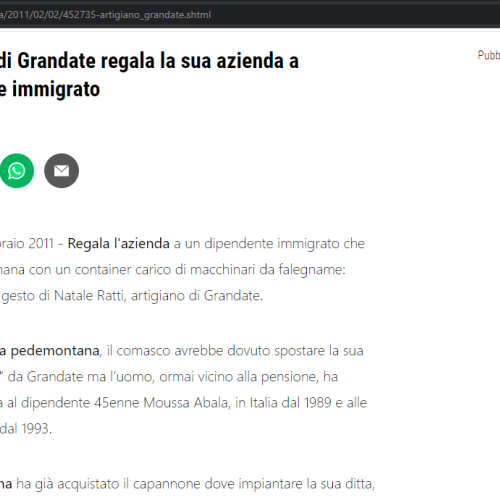 Artigiano di Grandate regala la sua azienda a dipendente immigrato