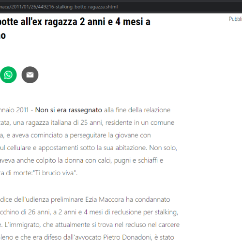 Stalking, botte all'ex ragazza 2 anni e 4 mesi a marocchino