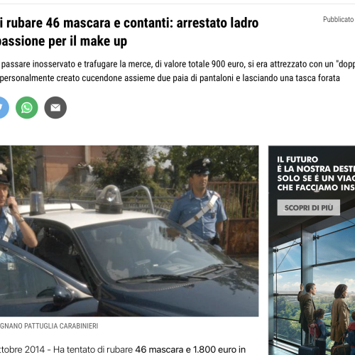 Tenta di rubare 46 mascara e contanti: arrestato ladro con la passione per il make up