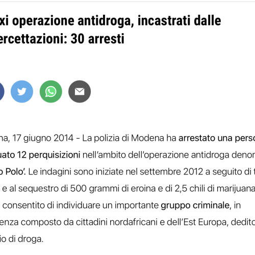Modena, 17 giugno 2014 - La polizia di Modena haarrestato una persona e effettuato 12 perquisizioni…