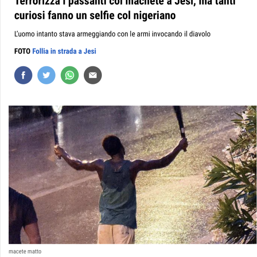 Terrorizza i passanti coi machete a Jesi, ma tanti curiosi fanno un selfie col nigeriano