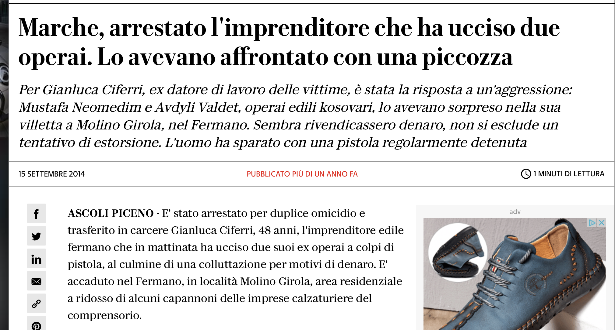L'omicida, sposato e padre di tre figli, gestisce una piccolissima impresa edile, la 'Gianluca Ciferri Movimento Terra', con sede legale presso la sua villa di via Monte Pacini a Molino Girola. Intorno alle 11 di questa mattina, due ex dipendenti di Ciferri, Mustafa Neomedim, 38 anni, e Avdyli Valdet, 26 anni, entrambi kosovari, si sono presentati presso l'abitazione. Sembra rivendicassero una somma di denaro non corrisposta, ma i carabinieri non escludono neppure un tentativo di estorsione. Neomedin e Valdet, entrambi incensurati e con un regolare permesso di soggiorno a Fermo, dopo il licenziamento, avvenuto questa estate, si erano rivolti a un giudice.