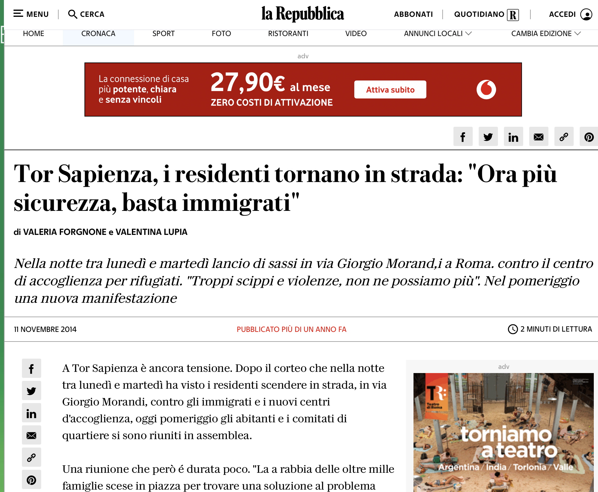 Uno può essere sia immigrato che residente, no? Non secondo questo titolo de La Repubblica di Roma.