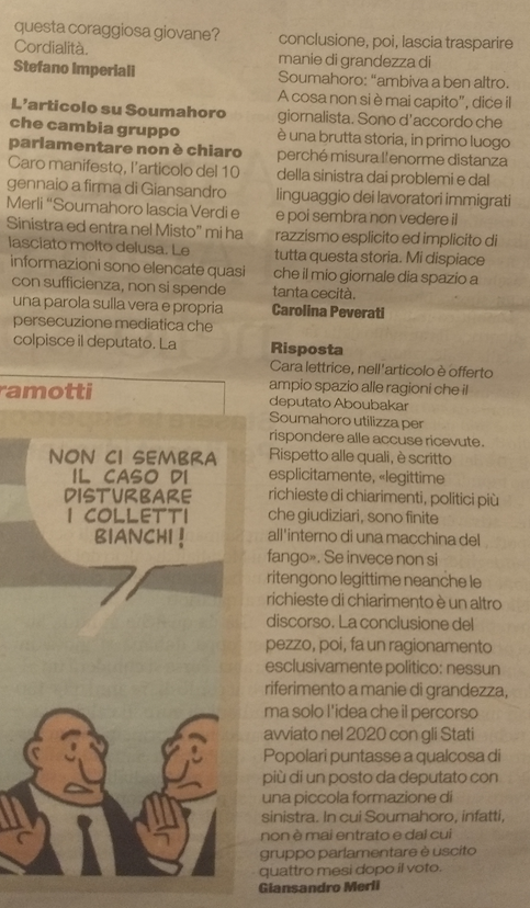 lettera di Carola Peverati di Cittadini del Mondo che contesta l'articolo su Soumahoro del10 gennaio 2023 (vedi link sotto)