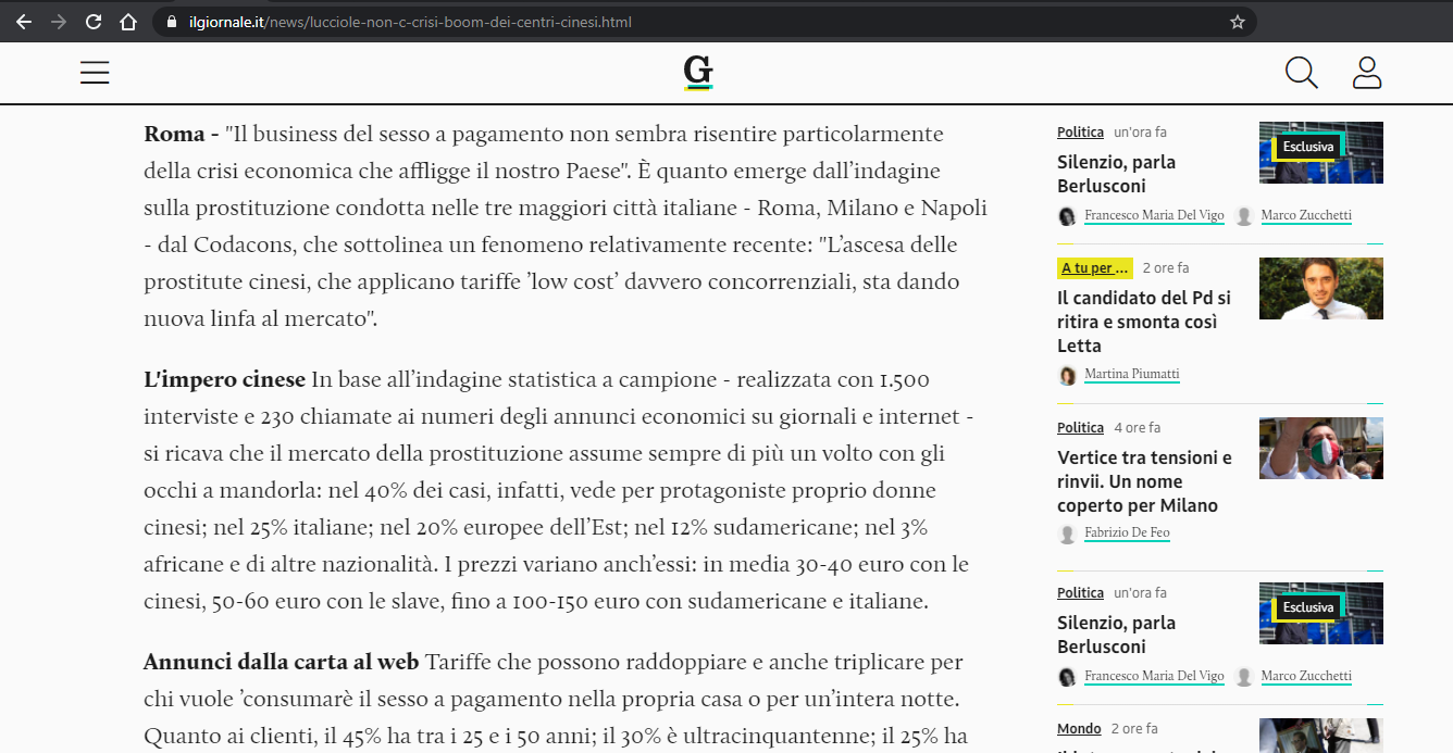 L'ascesa delle prostitute cinesi, che applicano tariffe "low cost" davvero concorrenziali, sta dando nuova linfa al mercato". L'impero cinese [...]il mercato della prostituzione assume sempre di più un volto con gli occhi a mandorla.