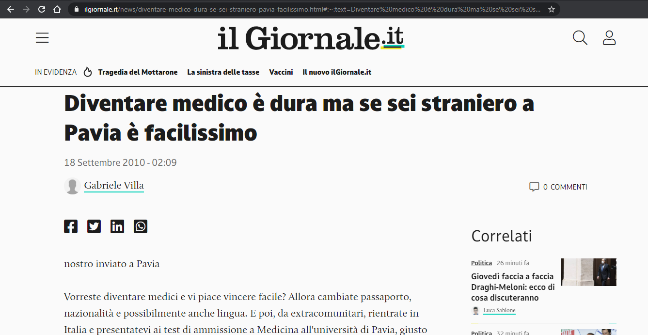 Vorreste diventare medici e vi piace vincere facile? Allora cambiate passaporto, nazionalità e possibilmente anche lingua. E poi, da extracomunitari, rientrate in Italia e presentatevi ai test di ammissione a Medicina all'università di Pavia, giusto per esempio.
