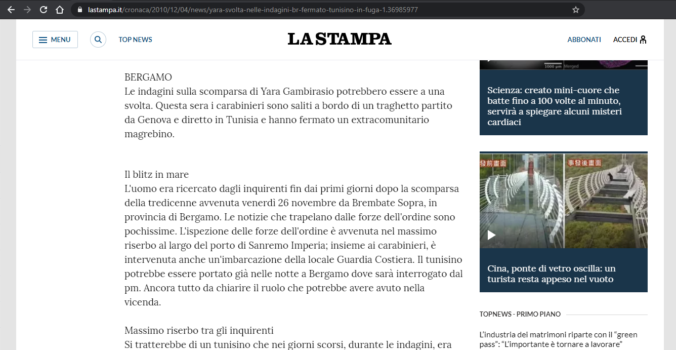 Yara, svolta nelle indagini Fermato tunisino in fuga
