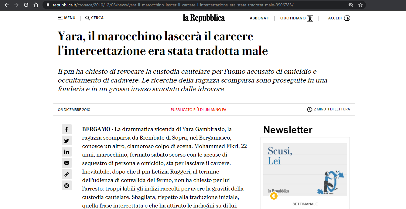 Yara, il marocchino lascerà il carcere l'intercettazione era stata tradotta male