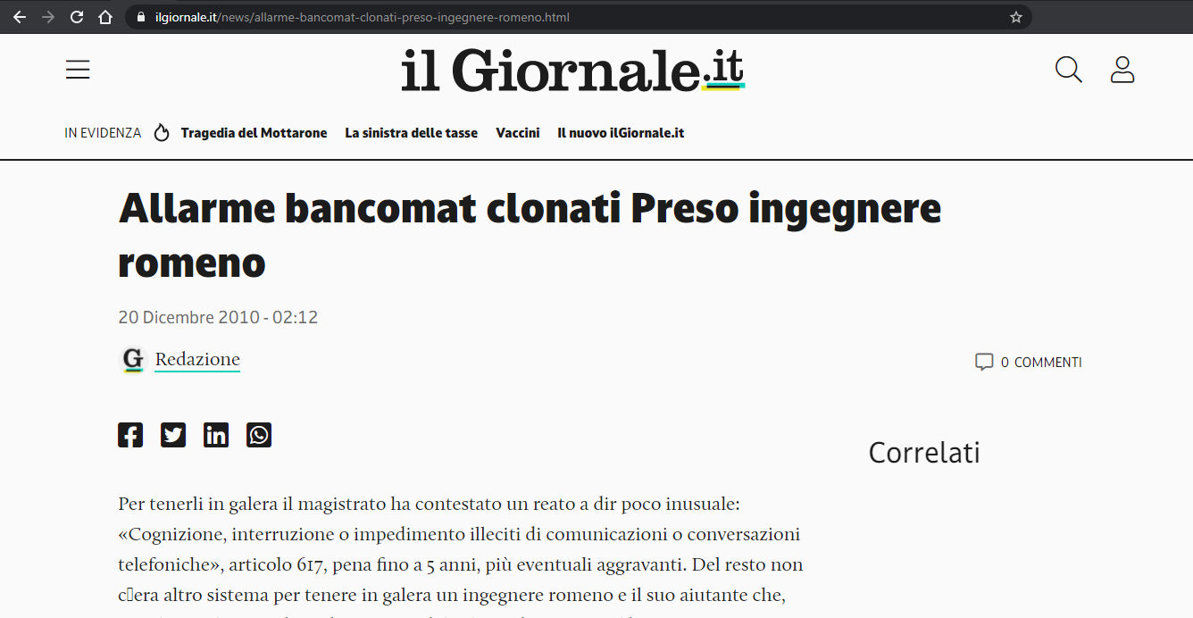 Per tenerli in galera il magistrato ha contestato un reato a dir poco inusuale.... Del resto non c’era altro sistema per tenere in galera un ingegnere romeno e il suo aiutante ...Restava solo da contestare un reato bello pesante per tenere i due malandrini in carcere...