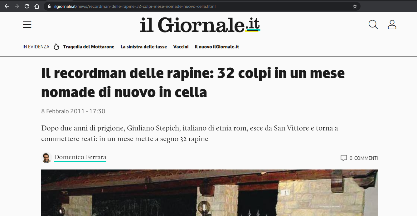 Dopo due anni di prigione, Giuliano Stepich, italiano di etnia rom, esce da San Vittore e torna a commettere reati: in un mese mette a segno 32 rapine