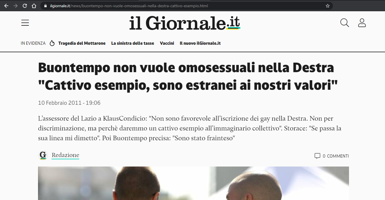l'assessore laziale si è lasciato andare a dichiarazioni subito tacciate di omofobia. "Non sono favorevole all'iscrizione dei gay ne La Destra. Non per discriminazione ma perchè daremmo un cattivo esempio alla collettività".