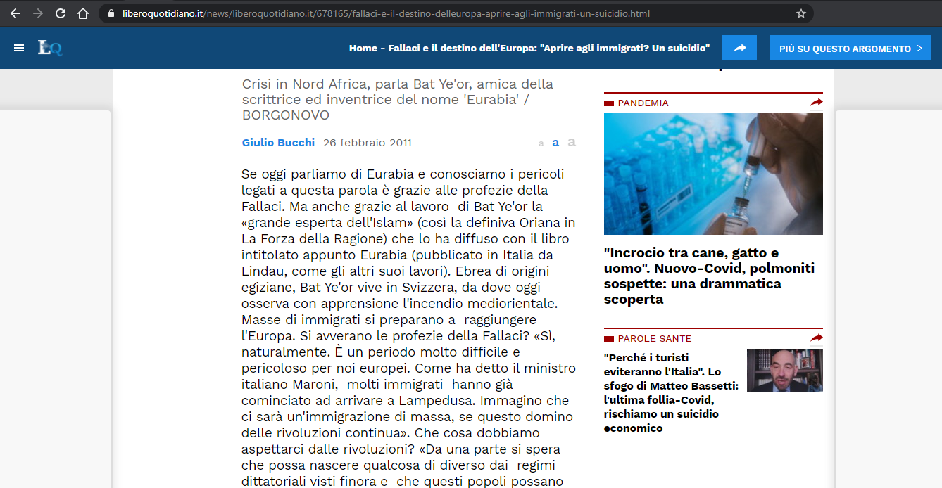 Oriana fallaci e il destino dell'Europa: "aprire agli immigrati? un suicidio"
