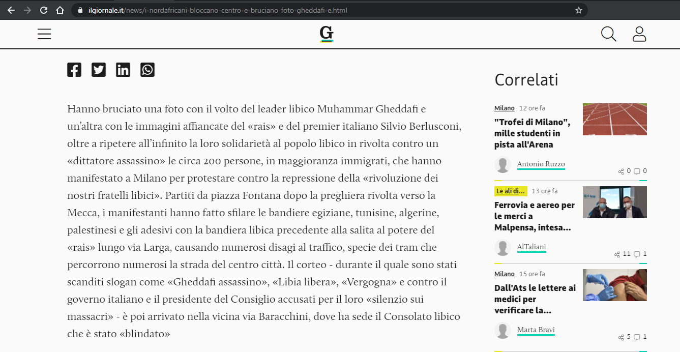 Hanno bruciato una foto con il volto del leader libico Muhammar Gheddafi e un’altra con le immagini affiancate del «rais» e del premier italiano Silvio Berlusconi, oltre a ripetere all’infinito la loro solidarietà al popolo libico ... causando numerosi disagi al traffico, specie dei tram