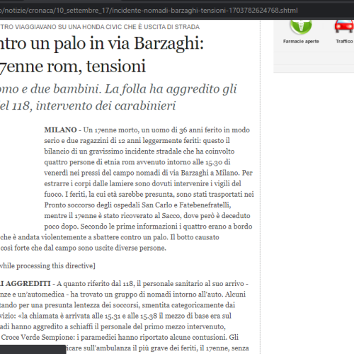 Auto contro un palo in via Barzaghi: muore 17enne rom, tensioni