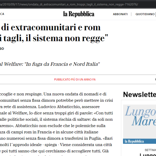 Bari accoglie e non respinge. Una nuova ondata di nomadi e di extracomunitari senza fissa dimora po…