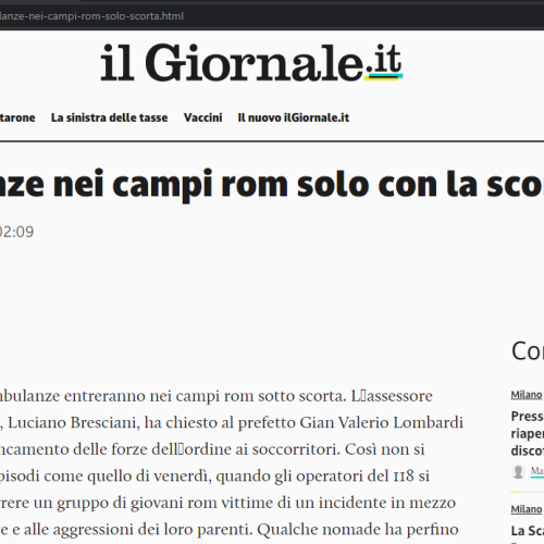 Ambulanze nei campi rom solo con la scorta