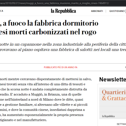 Due operai cinesi, marito e moglie entrambi regolari, sono stati trovati morti, durante le operazio…