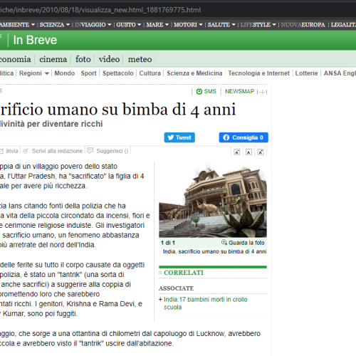 India: sacrificio umano su una bambina di 4 anni