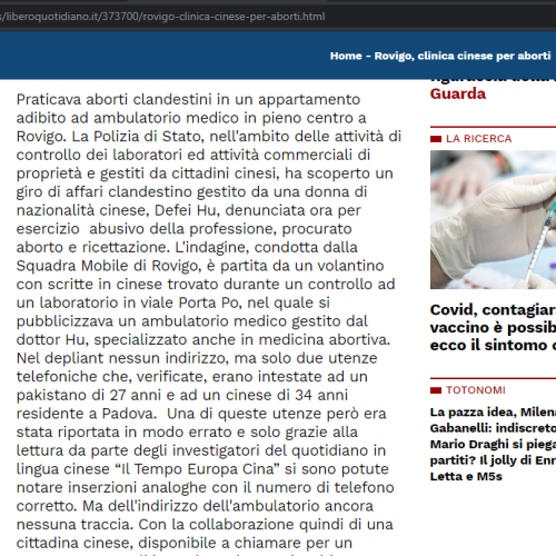Rovigo: 'clinica' cinese per aborti