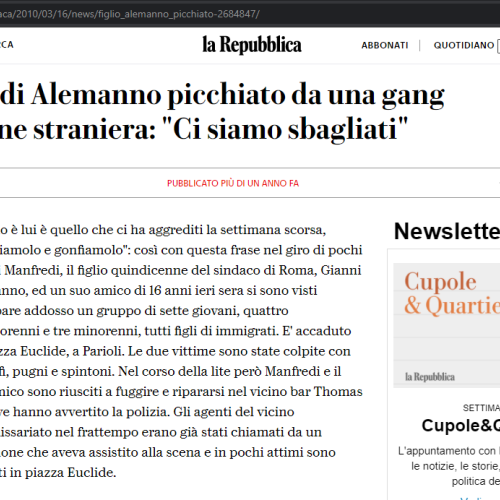 Figlio di Alemanno picchiato da cinque immigrati a Roma